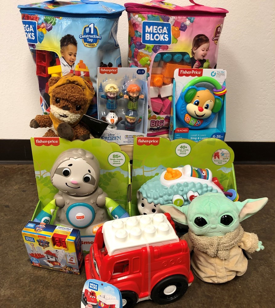 2 Mega Bloks Mega Bloks truck Fisher-Price learning toys Star Wars plush toys Total retail value: $150