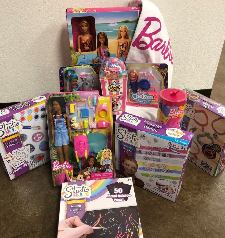 Assorted Barbie toys and t-shirt Studio D.I.Y. craft kits Total retail value: $200
